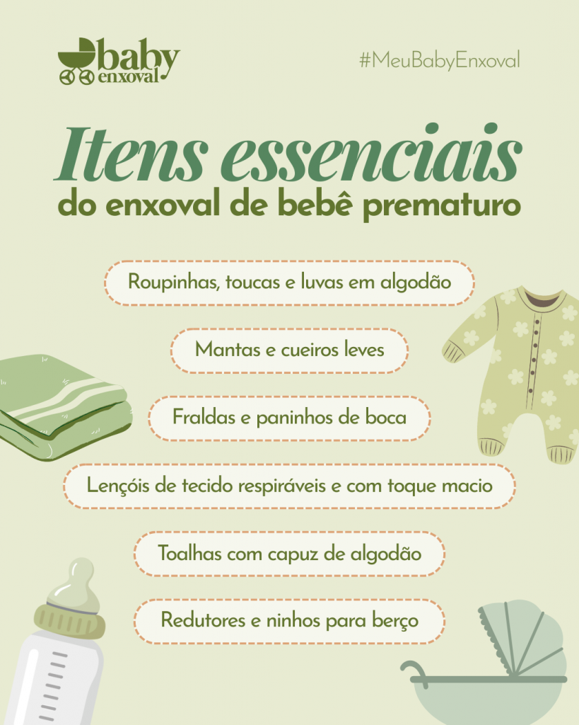 Como você pode perceber, o enxoval de bebê prematuro é diferente do enxoval tradicional para atender as necessidades específicas do bebê e garantir o máximo de conforto, praticidade e segurança para a família. Listamos alguns produtos Baby Enxoval que costumam ser perfeitos para este momento de adaptação.