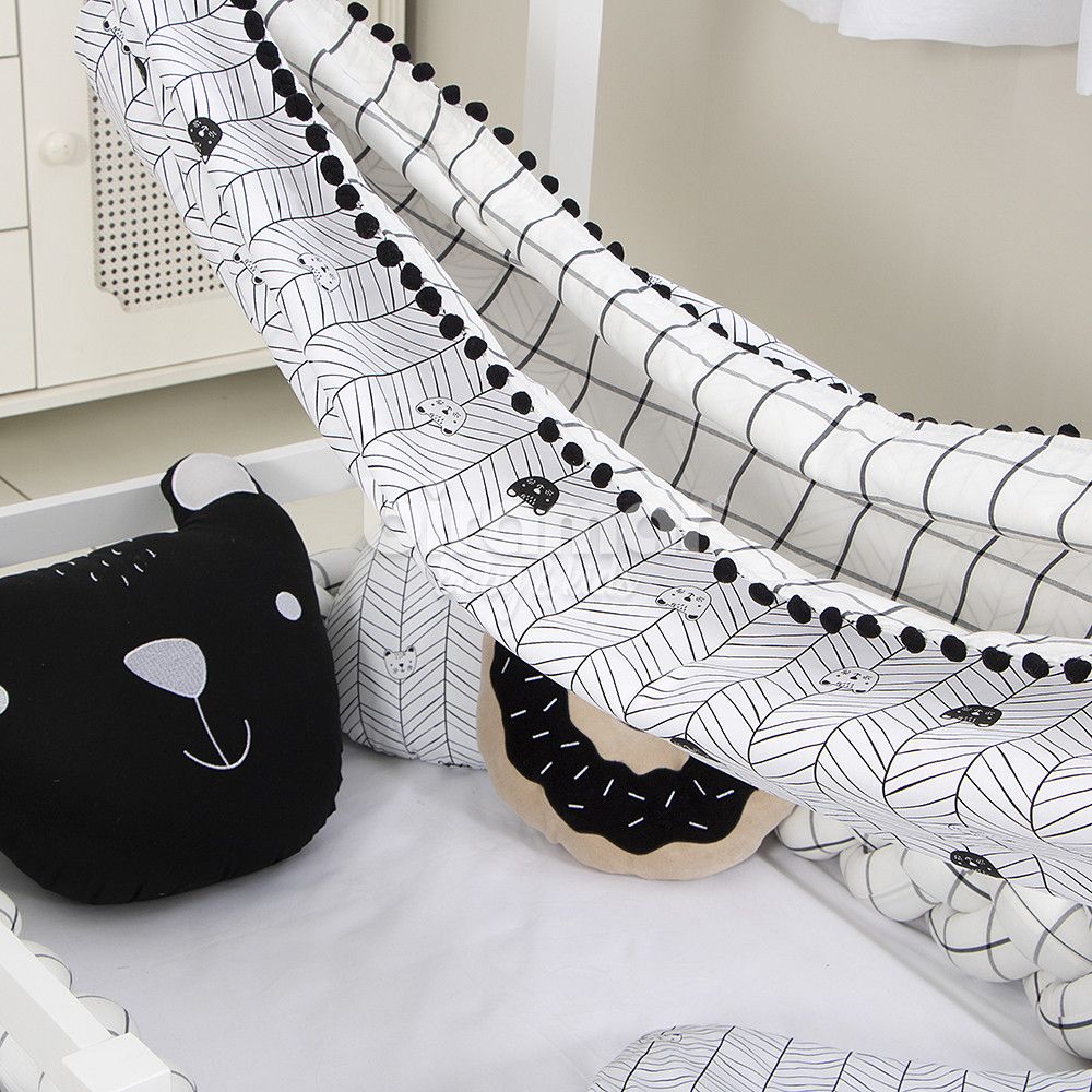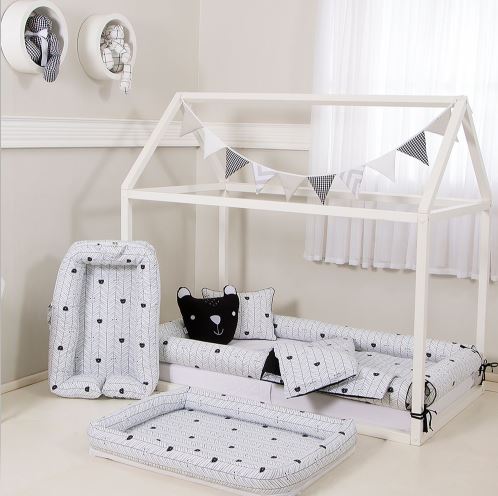 Com design lúdico, a coleção Aisha traz formas geométricas modernas e irregulares como background para um mix de mini ursinhos. Trata-se de uma estampa super exclusiva, desenhada em colaboração com a designer de moda @wish.hunter.mama. Nesta coleção disponÃvel na Baby Enxoval, o preto assume o protagonismo para criar um quarto que foge do tradicional sem perder o essencial que é o acolhimento.