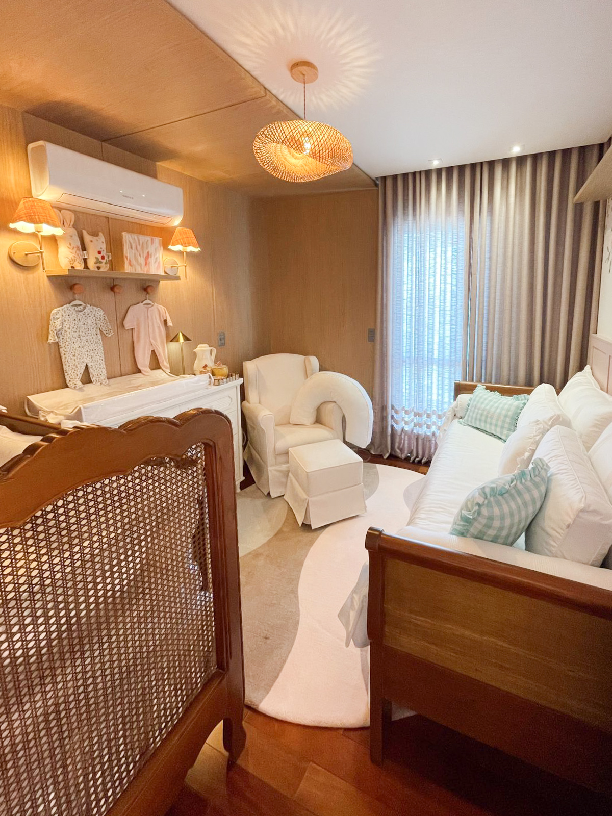 Repare ainda que, no Pinterest, o berço quase sempre aparece com mais de um elemento: protetor ou trança, almofadas, mantas, porta fraldas e organizadores. Isso acontece porque essas camadas de enxoval deixam a decoração mais charmosa! Por isso, a dica é escolher peças que conversem entre si, mantendo a mesma paleta ou estilo.