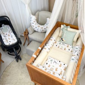 Além da estética, é importante lembrar que conforto e funcionalidade devem ser prioridades. Por isso, pensar sobre a circulação, iluminação e ventilação do quarto é fundamental. Para o enxoval, é preciso investir em tecidos confortáveis e, principalmente, em peças práticas, de fácil higienização, que facilitem o dia a dia com os bebês. Você pode optar por kits e itens disponíveis a pronta entrega, ou fazer a encomenda de um enxoval personalizado.
